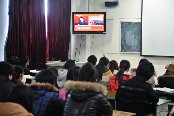 我院学生在教室观看“十八大”专题直播