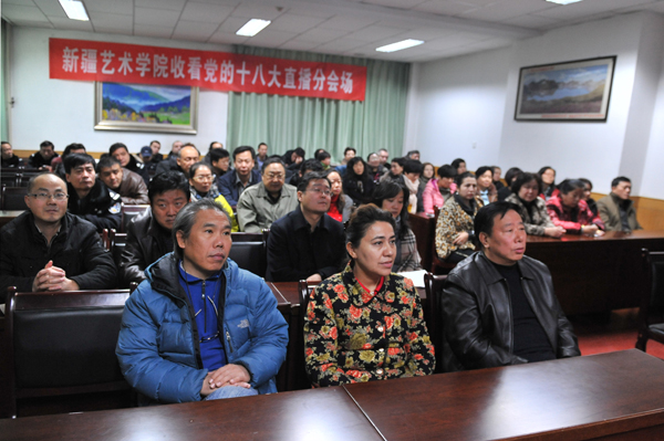 11月15日上午,新疆艺术学院广大师生认真收看了党的十八届中央委员会新选出的中央政治局常委同中外记者见面会盛况。