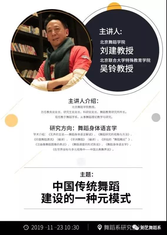 为促进我校舞蹈学科建设与发展,提高我校舞蹈系师生的舞蹈理论水平和创新意识,开拓视野、启迪思维,2019年11月23日上午我系邀请到北京舞蹈学院刘建教授为舞蹈系全体研究生开展《中国传统舞蹈建设的一种元模式》专题讲座。